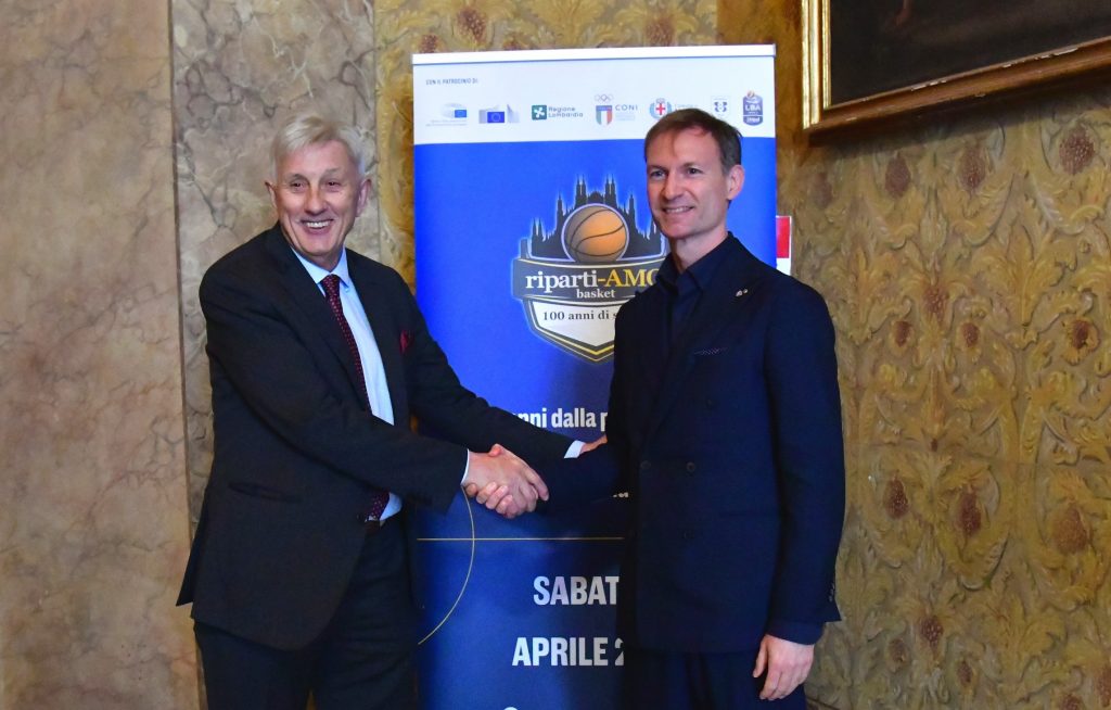 “Ripartiamo Basket” nasce da un’idea di LIBA (Legends International Basketball Association) Italia che, ha rilevato Federico Romani, “ha avuto il merito di coinvolgere e mettere insieme tutte le istituzioni ad ogni livello: Municipi cittadini, Comune di Milano, Consiglio e Giunta regionali, tutti attori distinti, ma tutti uniti nel celebrare questo anniversario”.